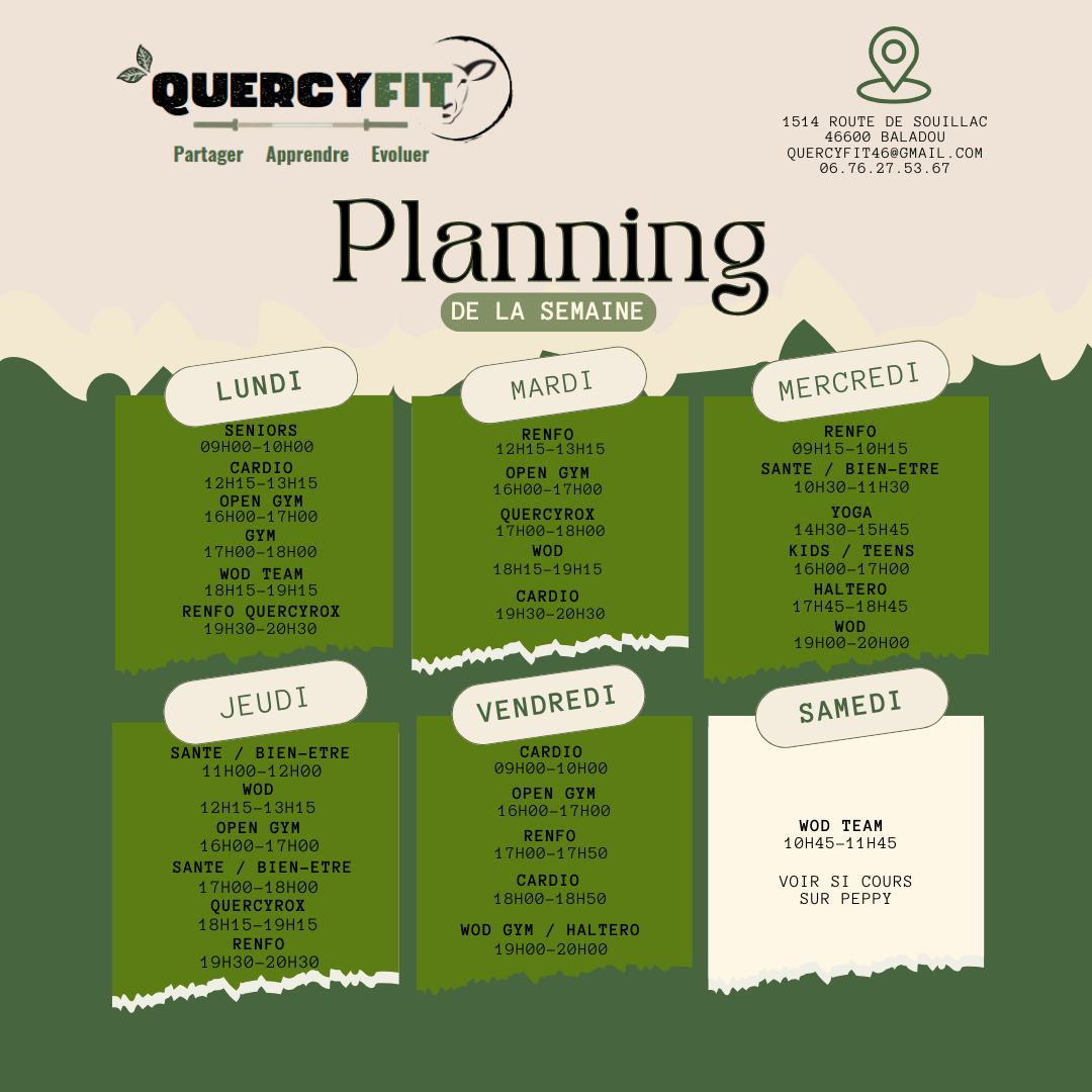 Bienvenue chez Quercyfit, votre salle de sport dédiée à votre remise en forme et à votre bien-être. Nous vous proposons un espace convivial et moderne, équipé des meilleurs matériels, pour vous accompagner dans l’atteinte de vos objectifs physiques.